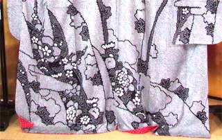 八掛の朱赤も絞りです。着物のすそから赤の絞りをチラリ