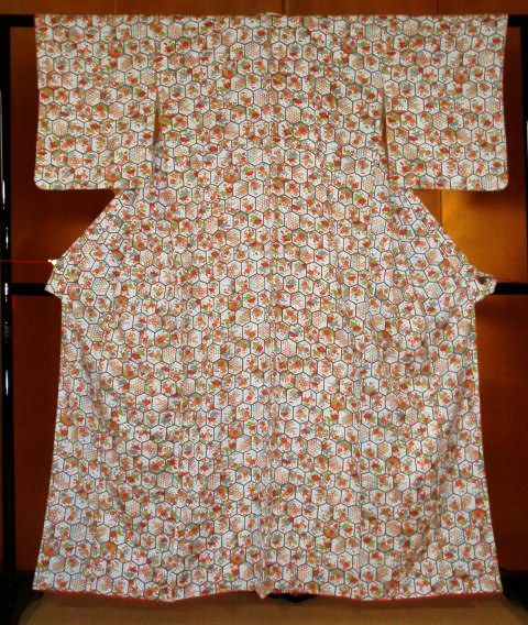 昭和50年代  万寿菊の地紋、八掛まで同じ柄の