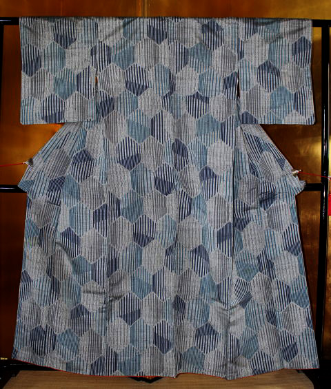 昭和50年代 大胆な亀甲つなぎの図柄が、精緻に